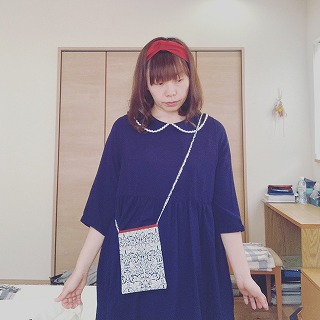 今年のハロウィンは「おとなキキ」。Mod Dollyのワンピースとhinagikuのヘアバンドとおさんぽポーチを着用しています。
