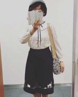 miss patinaのリボンベルトスカートとスワンブラウスを着用されています! 私(店長)の行きつけの素敵な美容室のスタイリストさんで、とーーってもセンスのいいMitsueさん^^